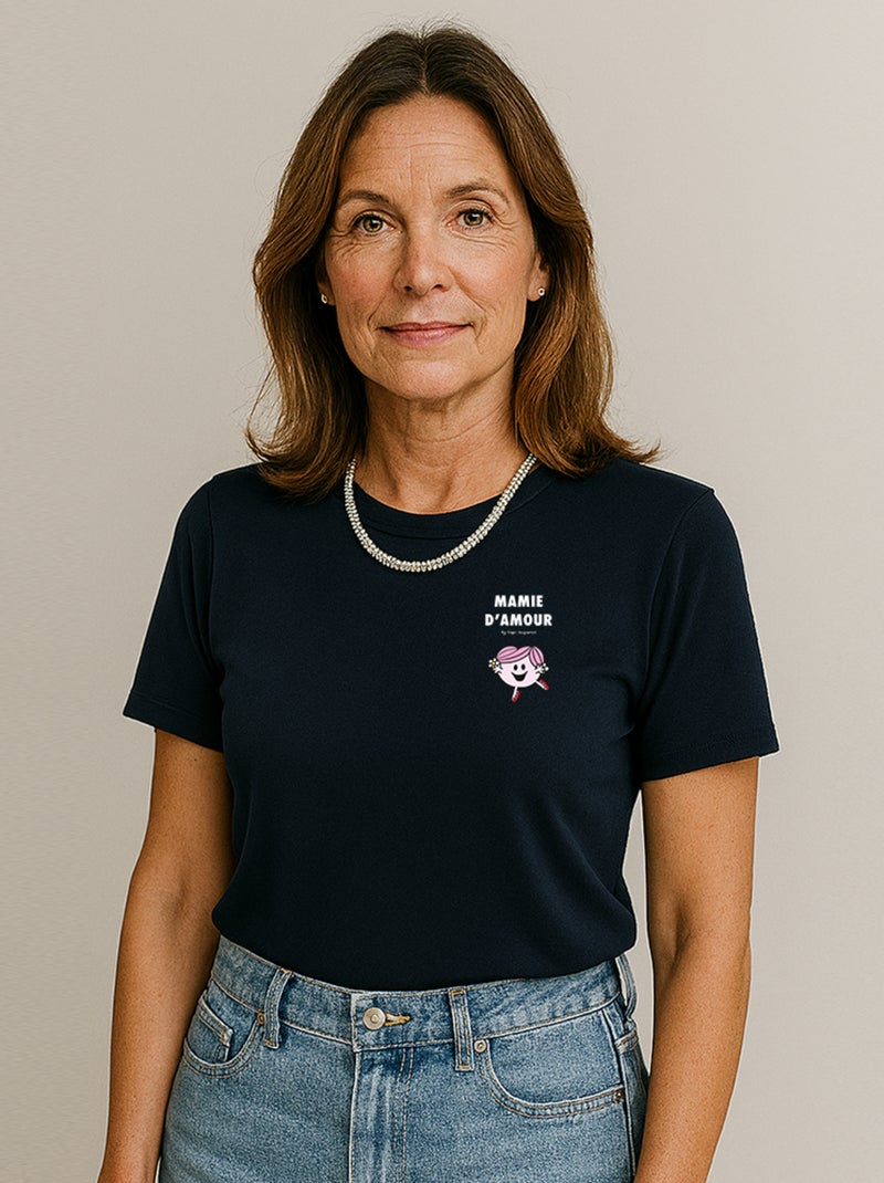 T-shirt Femme - MAMIE D'AMOUR CŒUR - Bleu marine