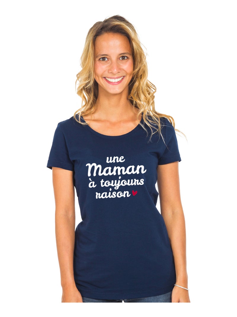 T-shirt Femme - UNE MAMAN A TOUJOURS RAISON WAF - Bleu marine