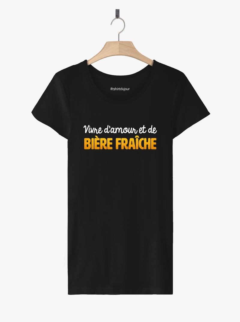 T-shirt Femme - VIVRE D'AMOUR ET DE BIERE FRAICHE - Noir
