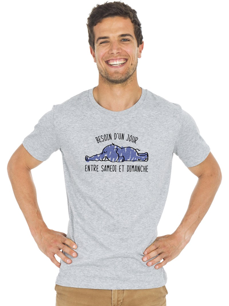 T-shirt Homme - BESOIN D'UN JOUR ENTRE SAMEDI ET DIMANCHE - Gris chiné