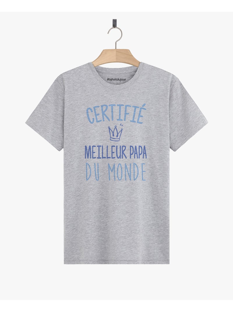 T-shirt Homme - CERTIFIE MEILLEUR PAPA - Gris chiné
