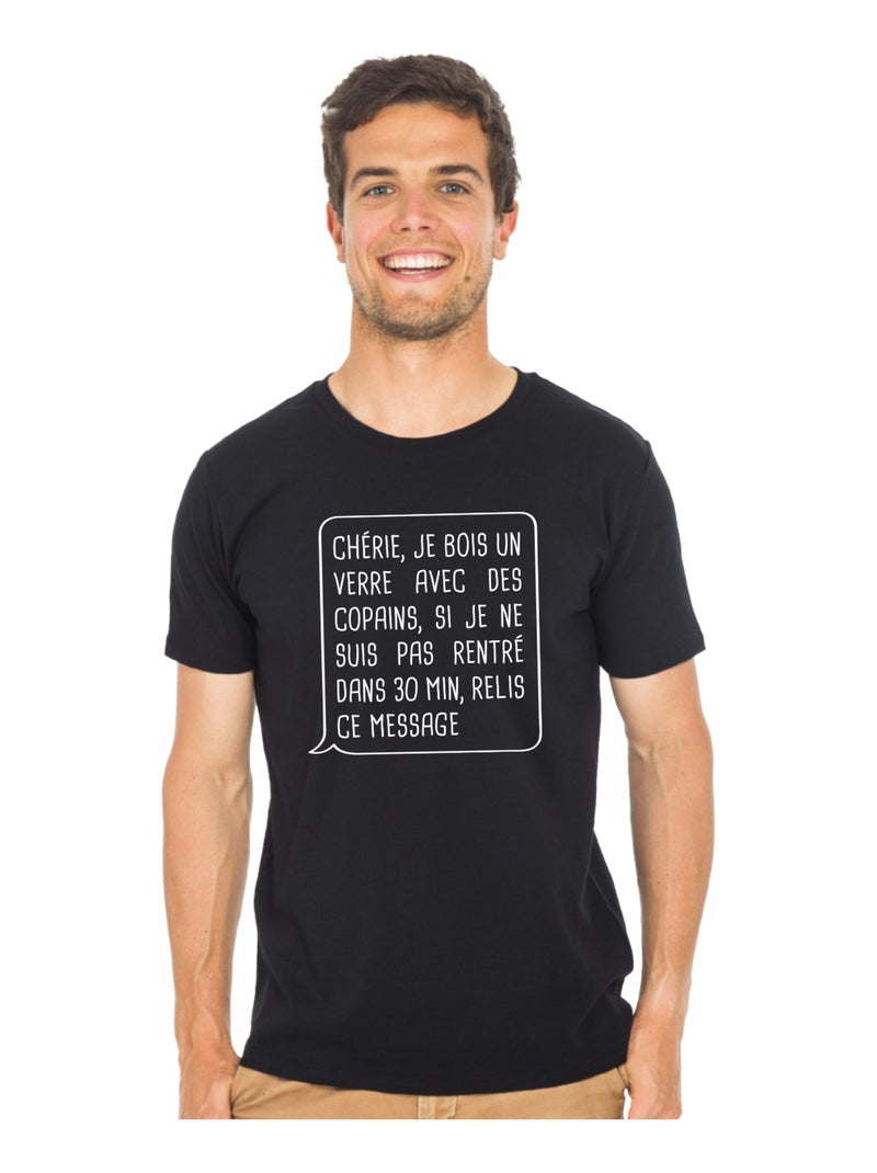 T-shirt Homme - CHÉRIE, JE BOIS UN VERRE AVEC DES COPAINS - Noir
