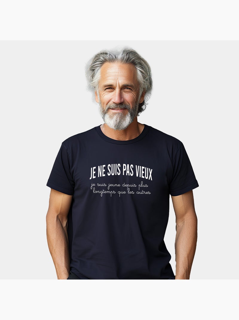 T-shirt Homme - JE NE SUIS PAS VIEUX, JE SUIS JEUNE DEPUIS PLUS LONGTEMPS QUE LES AUTRES - Bleu marine