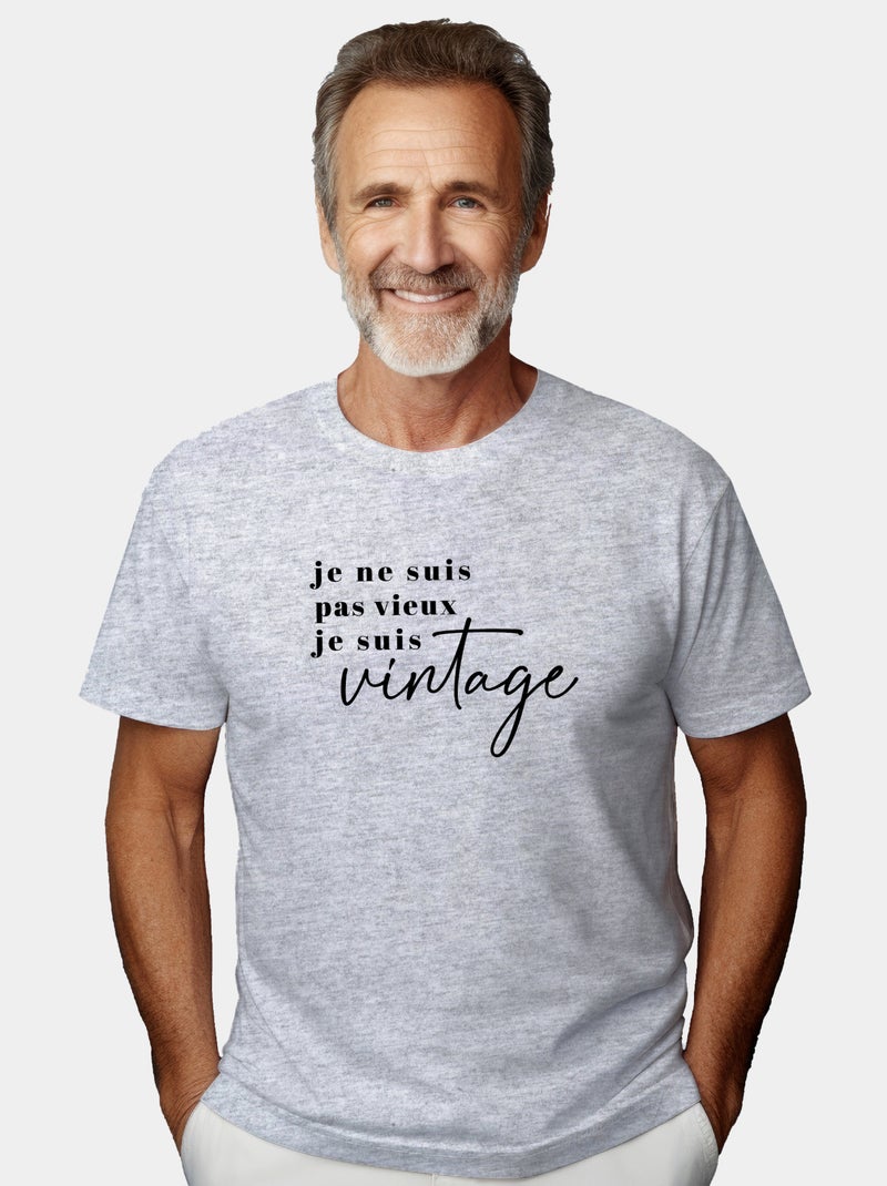 T-shirt Homme - JE NE SUIS PAS VIEUX JE SUIS VINTAGE - Gris chiné