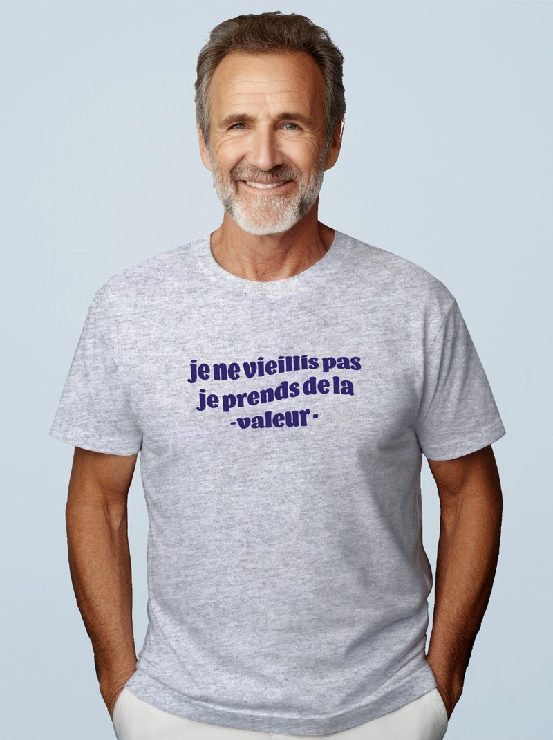 T-shirt Homme - JE NE VIEILLIS PAS JE PRENDS DE LA VALEUR BLEU - Gris chiné