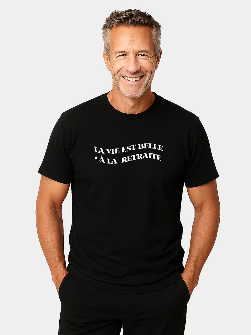 T-shirt Homme - LA VIE EST BELLE A LA RETRAITE - Noir