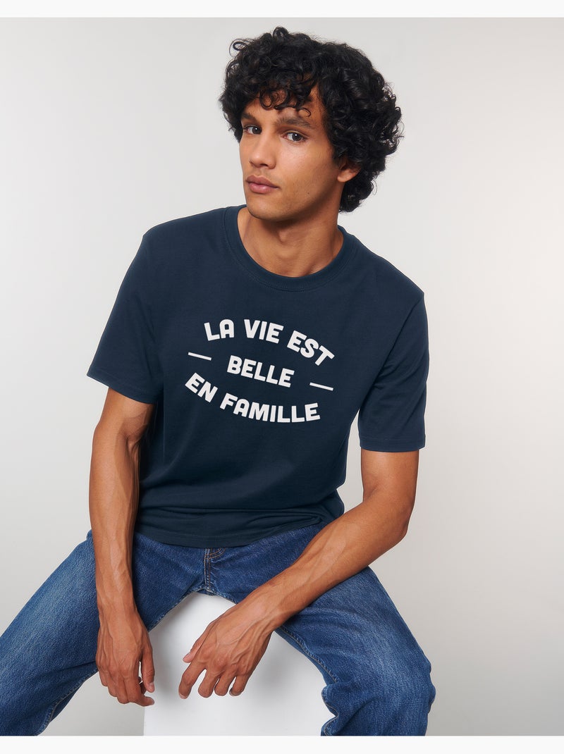 T-shirt Homme - LA VIE EST BELLE EN FAMILLE 2 FACE - Bleu marine