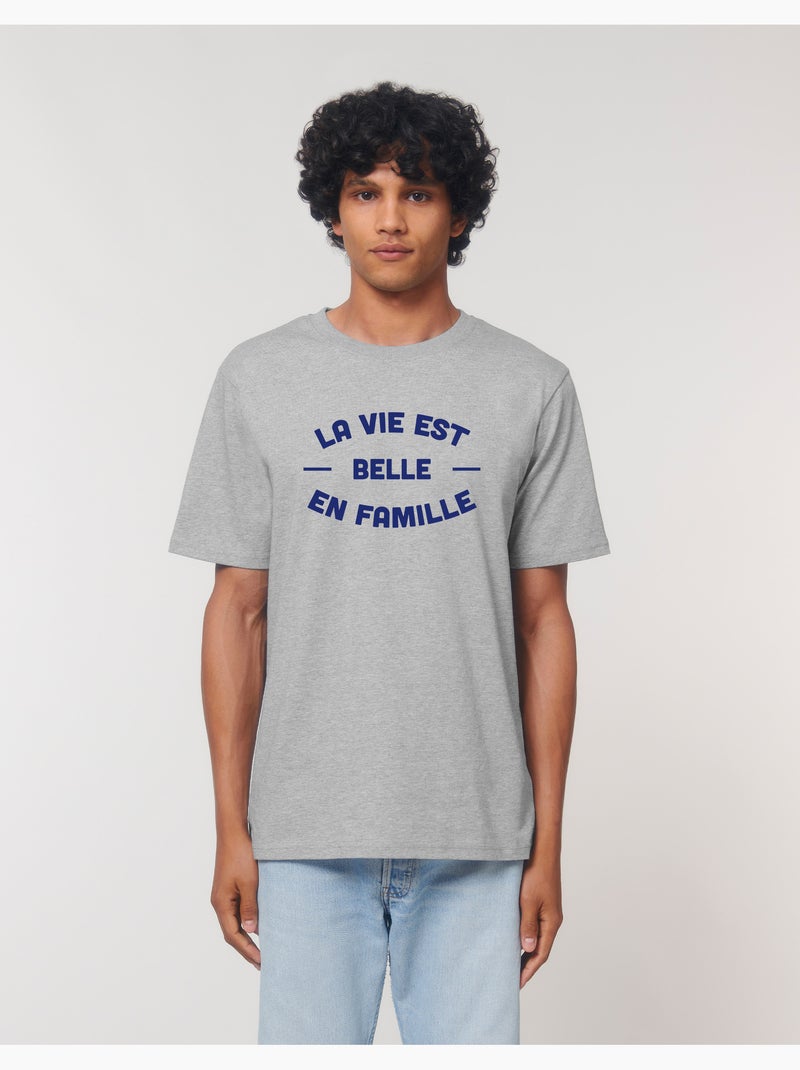 T-shirt Homme - LA VIE EST BELLE EN FAMILLE 2 FACE - Gris chiné