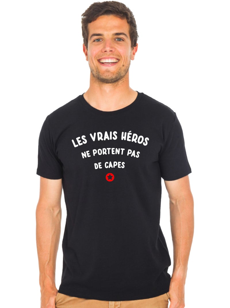 T-shirt Homme - LES VRAIS HEROS NE PORTENT PAS DE CAPES - Noir