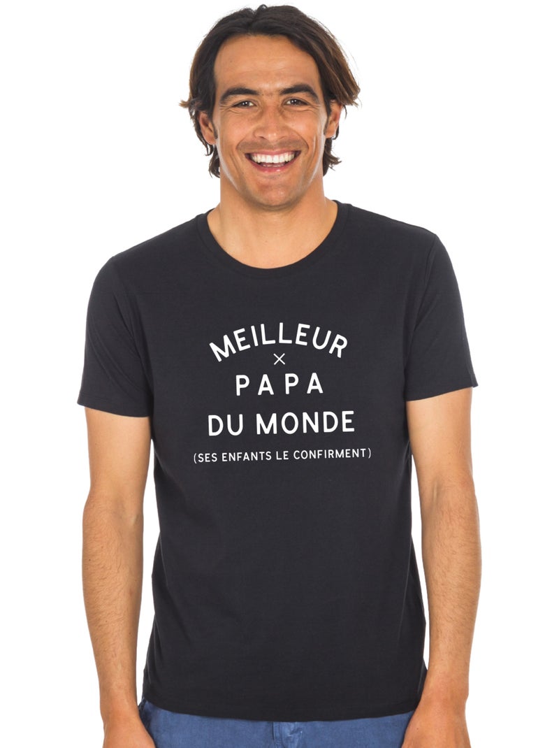 T-shirt Homme - MEILLEUR PAPA DU MONDE (SES ENFANTS LE CONFIRMENT) 2 WAF - Noir