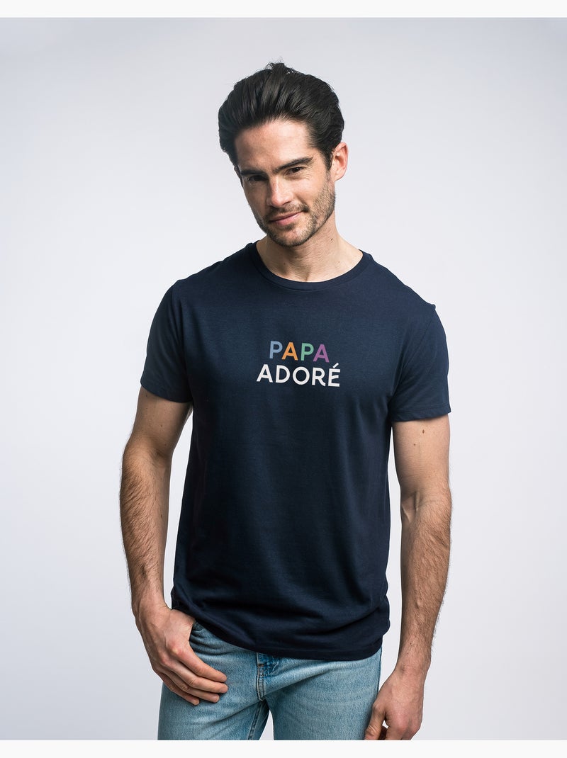 T-shirt Homme - PAPA ADORÉ COLORÉ - Bleu marine