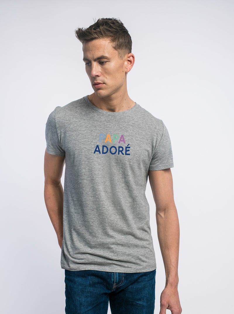 T-shirt Homme - PAPA ADORÉ COLORÉ - Gris chiné