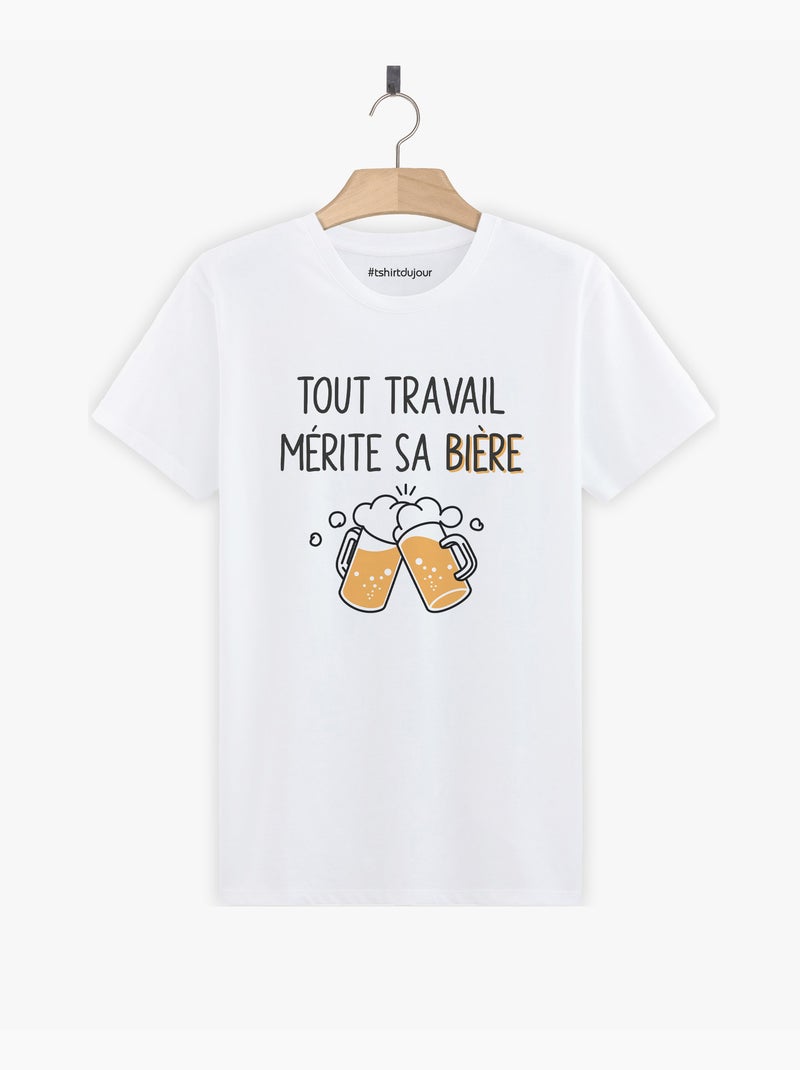 T-shirt Homme - TOUT TRAVAIL MERITE SA BIERE - Blanc