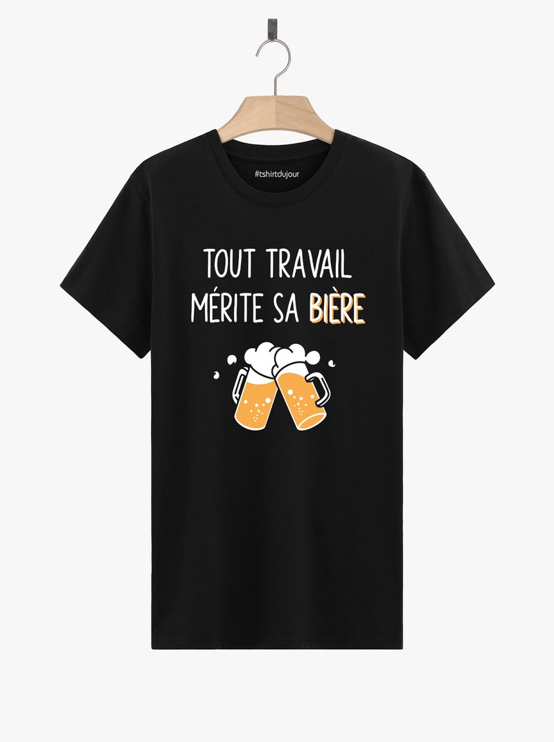 T-shirt Homme - TOUT TRAVAIL MERITE SA BIERE - Noir