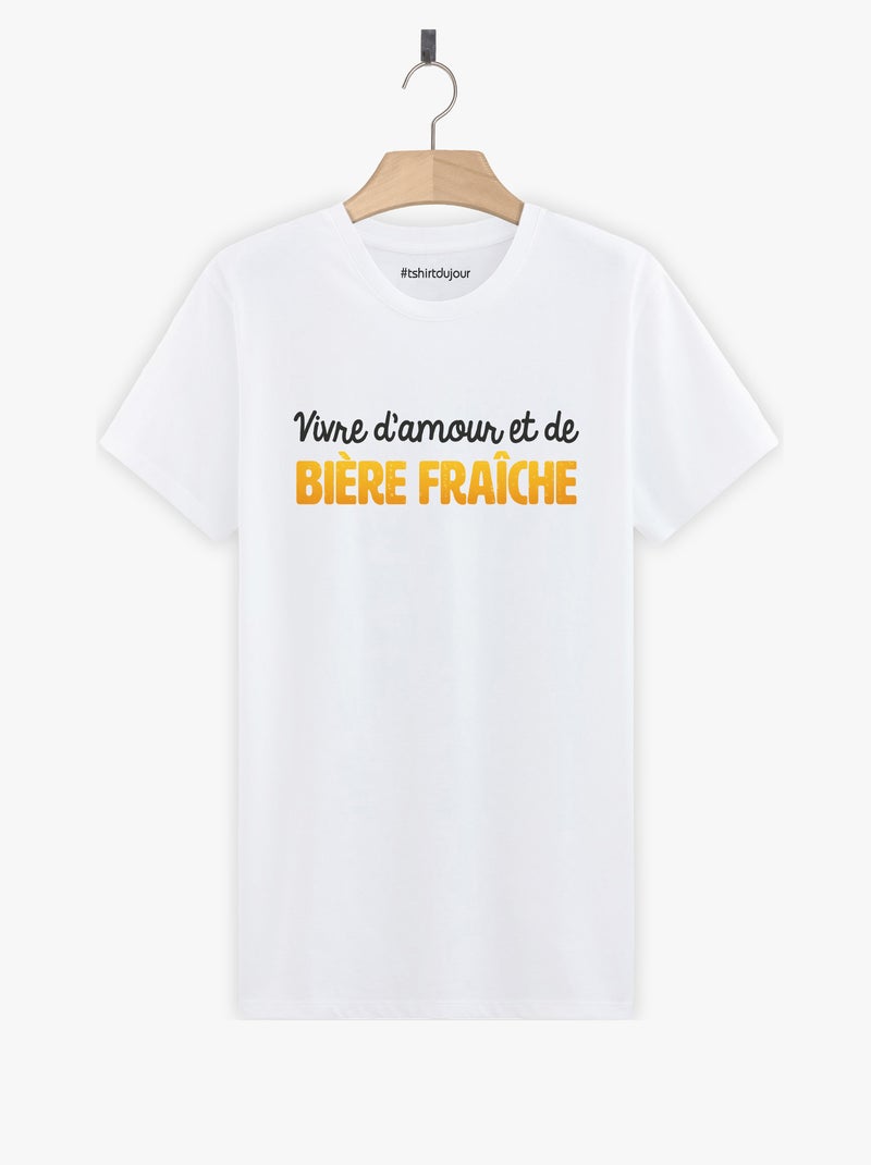T-shirt Homme - VIVRE D'AMOUR ET DE BIERE FRAICHE - Blanc