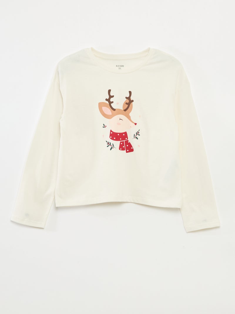 T-shirt imprimé manches longues - Blanc