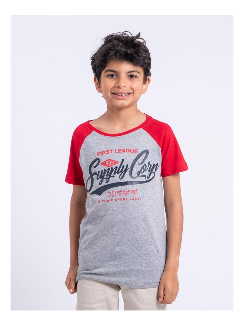T-shirt manches courtes col rond pur coton NECHIN garçon - Rouge