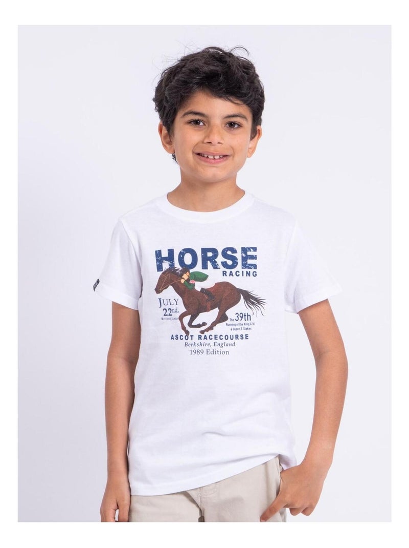 T-shirt manches courtes col rond pur coton NEDER garçon - Blanc