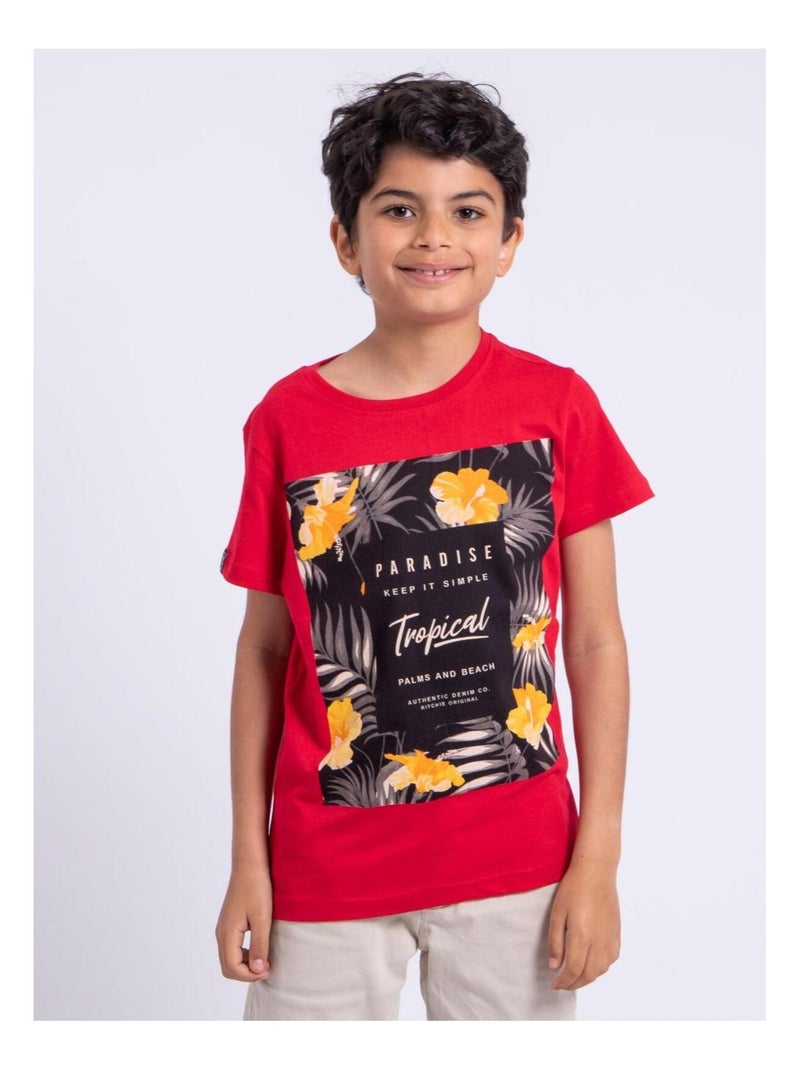 T-shirt manches courtes col rond pur coton NOCTAVIO garçon - Rouge