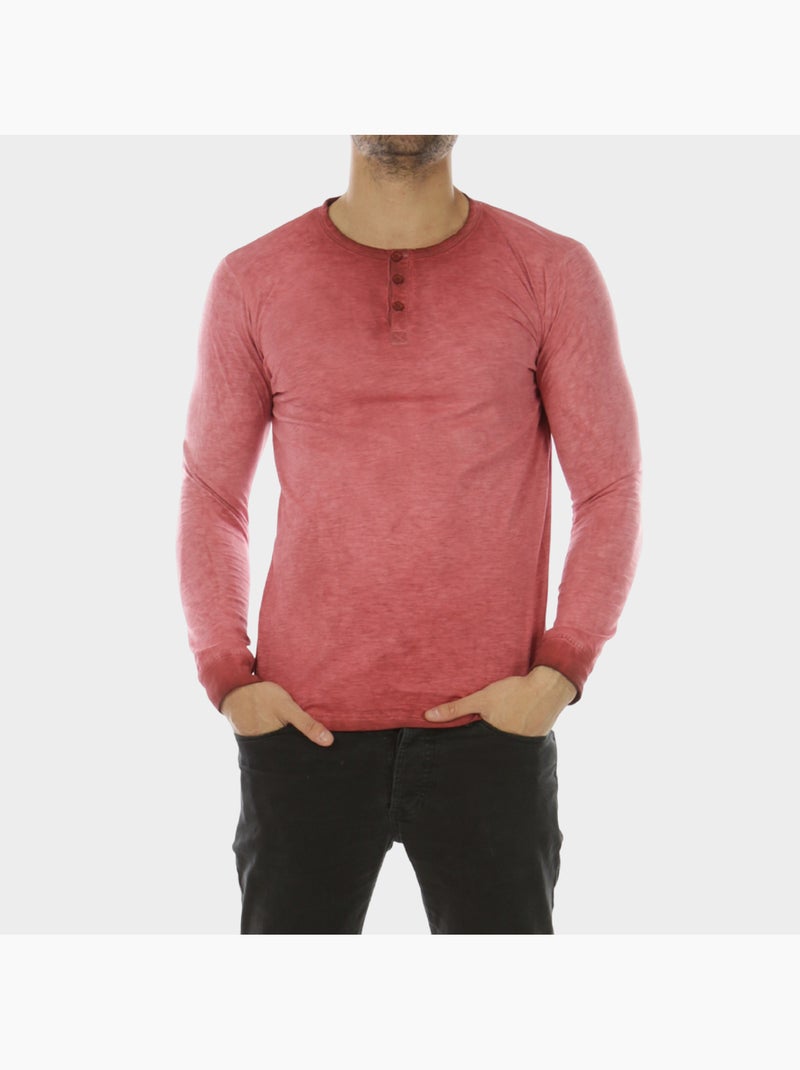 T-shirt manches longues col boutonné - Bordeaux