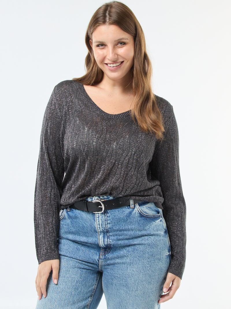 T-shirt 'ONLY CARMAKOMA' avec fils métallisés pailletés all over - Gris