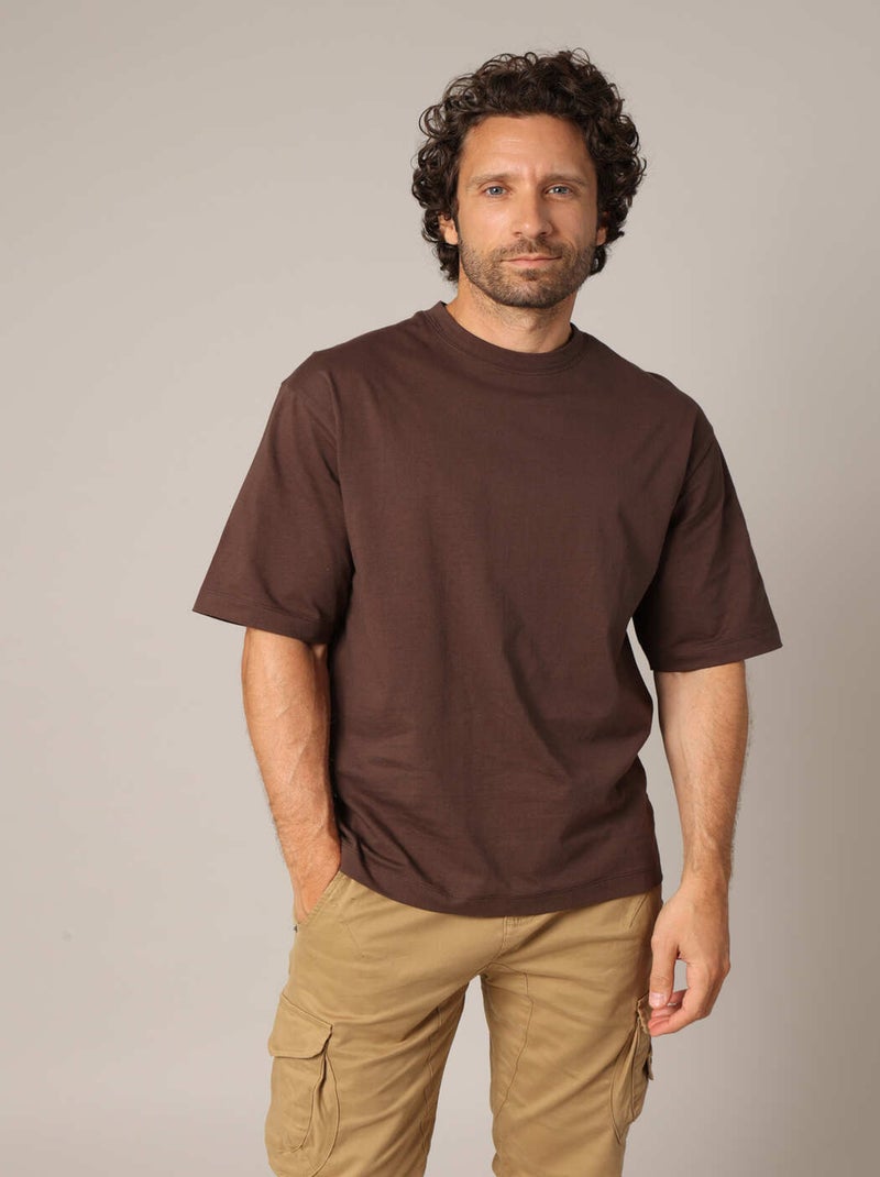 T-shirt oversize uni en 100% coton 'Deeluxe' - Marron foncé