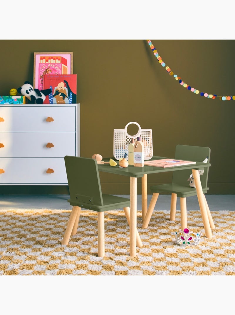 Table carrée enfant bois de pin 2 chaises Judith - Vert olive