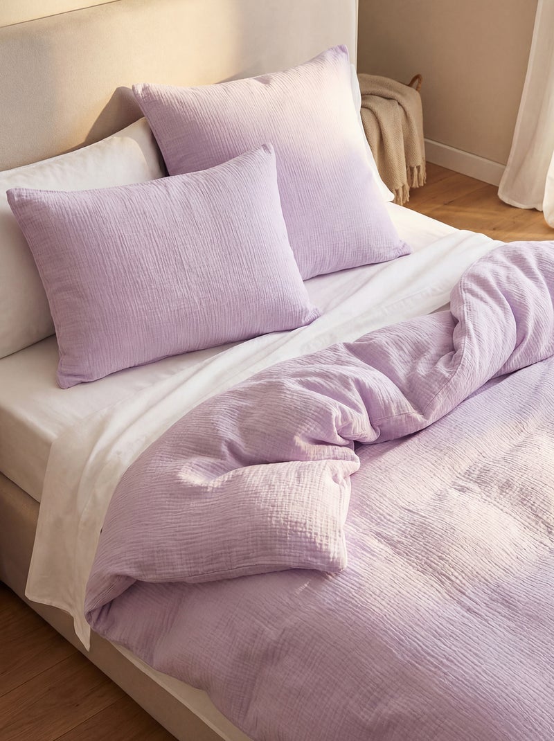 Taie d'oreiller gaze de coton 50 x 70 ou 63 x 63 cm - Kiabi Home - Lilas