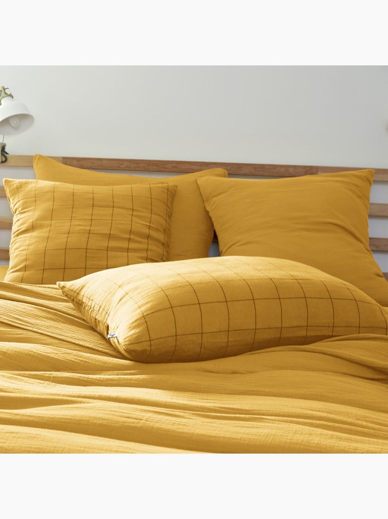 Taie d'oreiller gaze de coton grands carreaux - Jaune