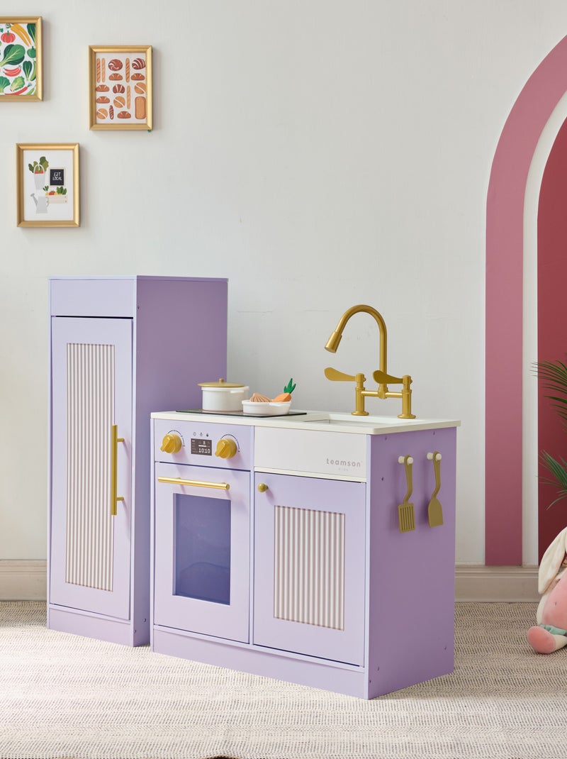 Teamson Kids, Cuisine enfant avec accessoires crochets étagères réfrigérateur - Violet