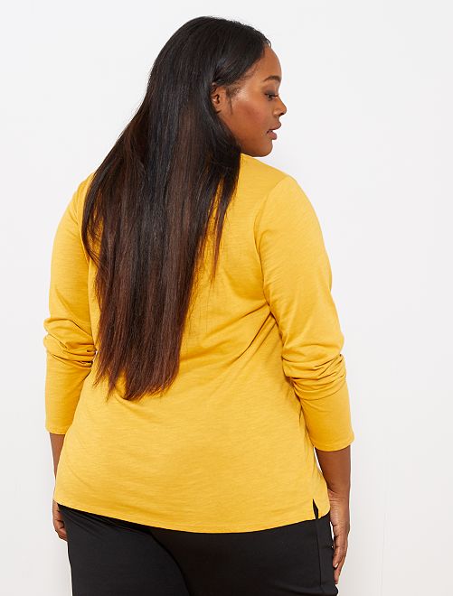 Le tee-shirt manches longues avec encolure V : un essentiel qui flatte toujours la silhouette en dégageant le décolleté !