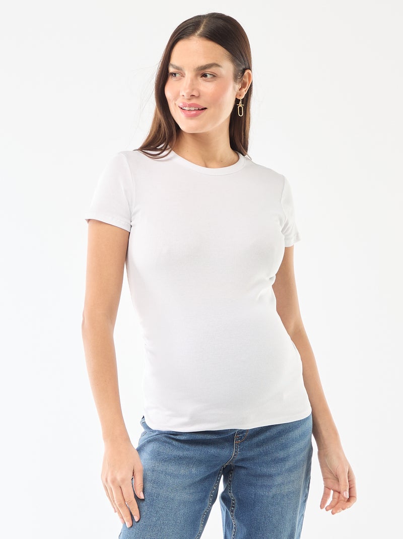Tee-shirt de maternité côtelé - Blanc