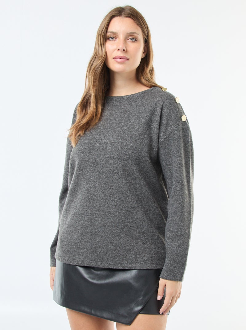 Tee-shirt maille doudou avec boutons dorés - Gris