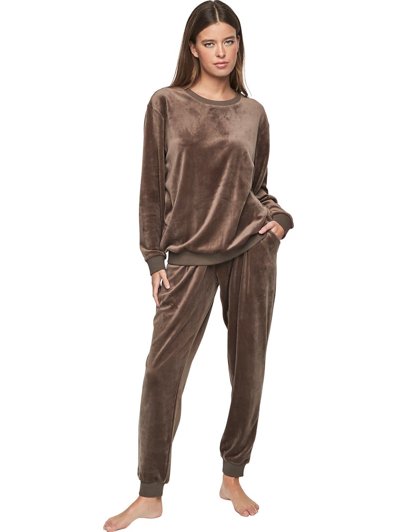 Tenue détente pyjama pantalon top P115 SPORT - Marron