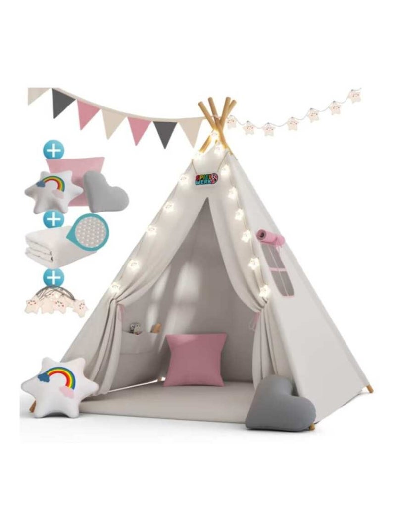 Tipi pour enfant avec tapis, coussins et guirlande - Rose