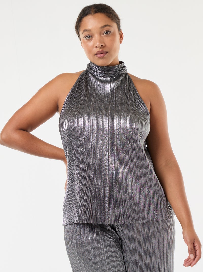 Plusieurs détails attireront votre attention : maille argentée, larges emmanchures américaines, encolure montante. De quoi rendre ce top absolument séduisant.