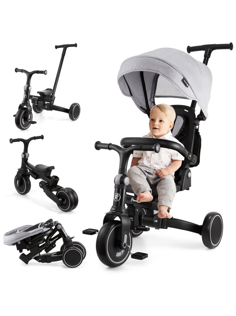 Tricycle Bébé évolutif, Siège pivotant 360°, Vélo Enfant, Draisienne Roues EVA Increvables, Pliable - Gris