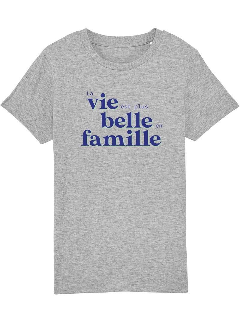 Tshirt Enfant LA VIE EST PLUS BELLE EN FAMILLE BLEU - Gris chiné
