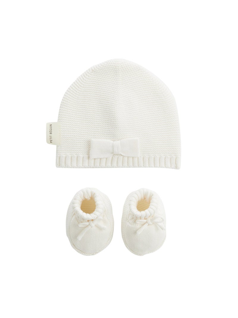 Turban bébé et chaussons en tricot Hello Baby - Ecru
