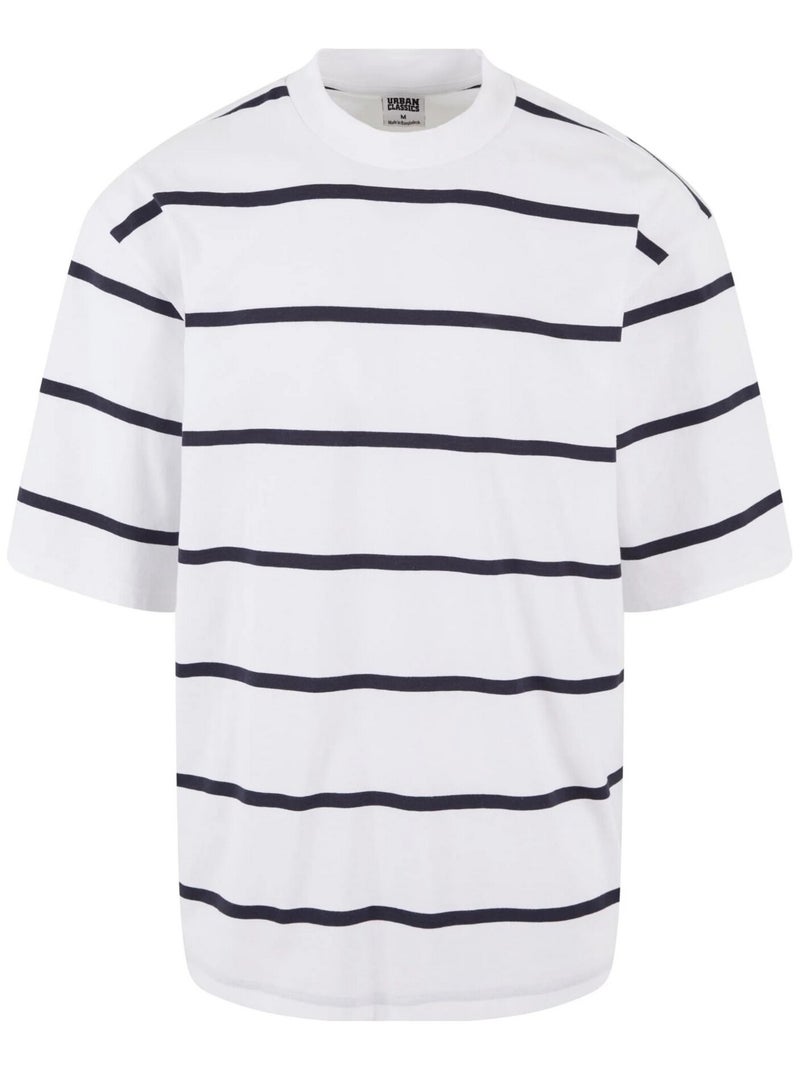 Urban Classics - T-shirt manches amples motif/style à rayures - Blanc Bleu