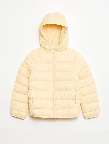 Quand le temps devient maussade, la doudoune légère fille sort du dressing pour protéger la tête, les petites mains et le haut du corps.