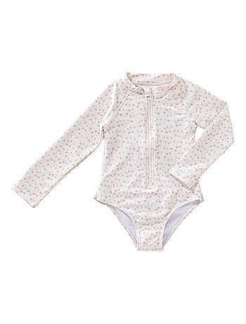 Associé à une jupe, une robe ou un pantalon, le maillot de bain manches longues filles peut devenir un body. Il peut ainsi se porter en dehors des activités aquatiques et devenir une pièce mode de la penderie. Sur Kiabi, découvrez notamment un adorable maillot de bain manches longues rose avec motifs pastèque pour un look très estival.