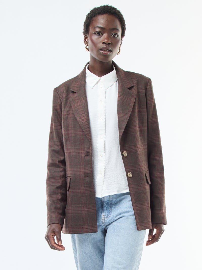 Veste blazer à carreaux - Marron