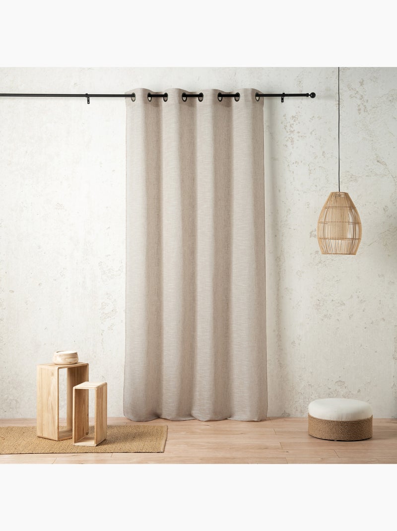 Voilage poly-lin à relief flammé avec œillets - Bois naturel