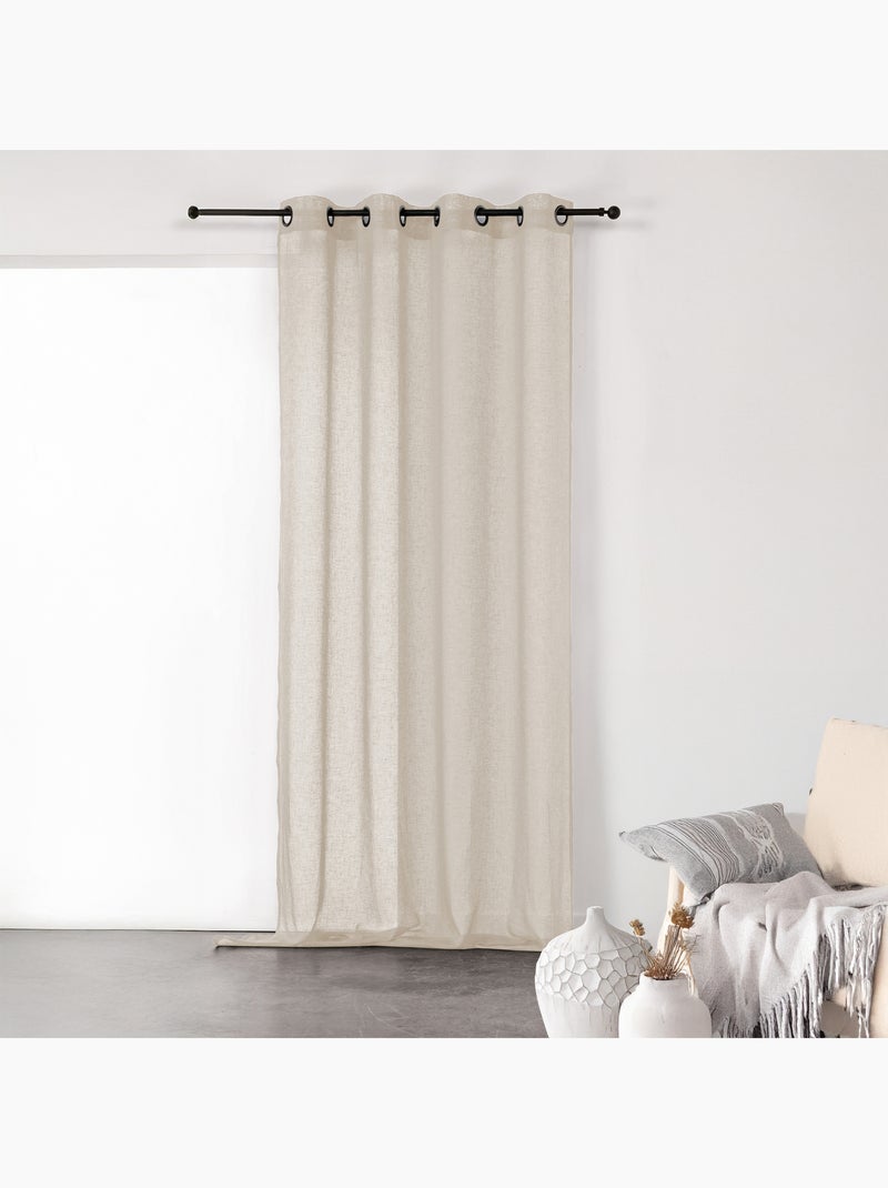 Voilage tamisant en gaze poly-lin à œillets - Beige clair