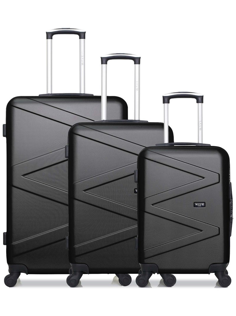 WAVE PARIS - Lot de 3 - Valise grand format, valise weekend et valise cabine AMAZONE - Noir